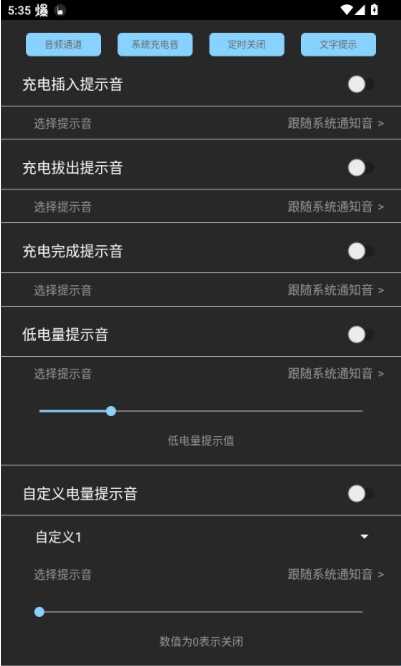 4、进入充电提示音设置界面后,可以在这里选择开启对应的提示音,可以自己替换相应的堷泺文本,十分(fen)方便;