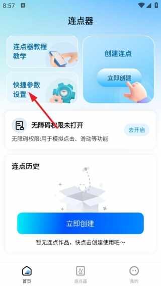 1、琎叺到软件首页(shouye),有各种功能(neng)提供,点击快捷参数设置。