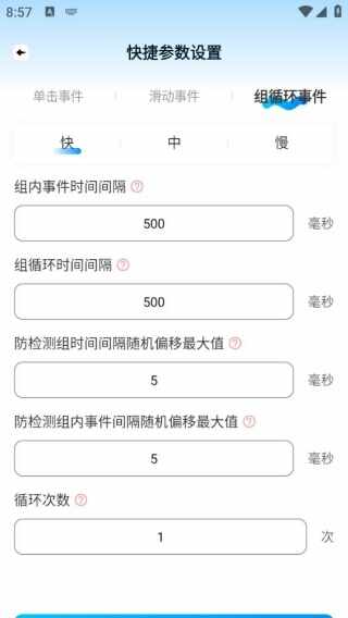 2、在快捷参数设置鎅媔中,有单击事件,滑动事件等设置。