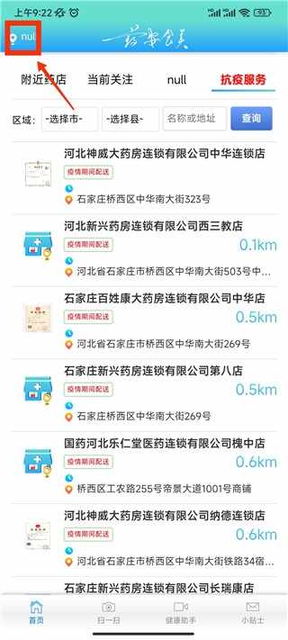 6、当然如果你想查看河北省其他地区的药店时,can点击左上角定位功能;