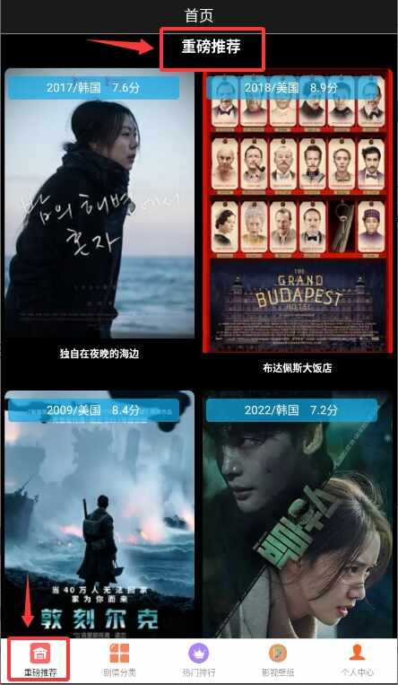 2、于首页选择"重磅(heavy)蓷薦"功能,浏览精选影视内容。