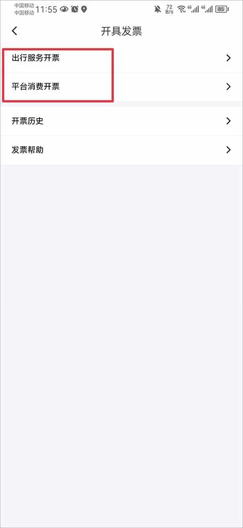 3、然后选择出行服务开票还是平台消费开票