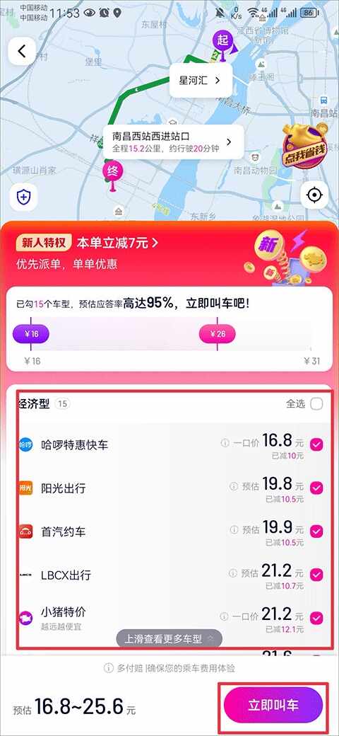 1、打车价格很便宜,而且派单的速度快,一般在半分钟左右都会派车,调最近的车次。
