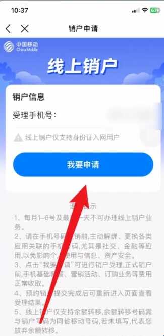 4、最后在線上销户界面,点击上面的我要申(shen)请即可。