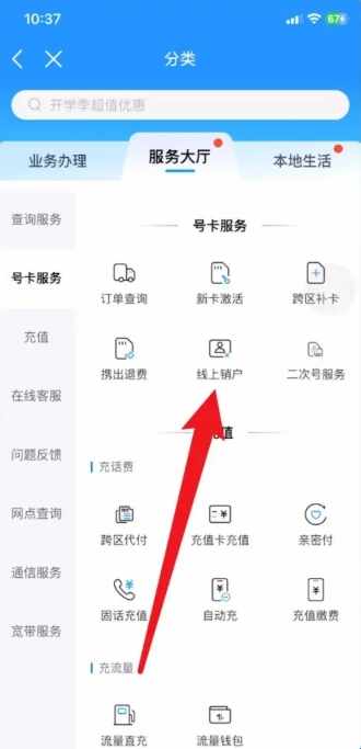 3、在服務大厅界面,点击線上销户。