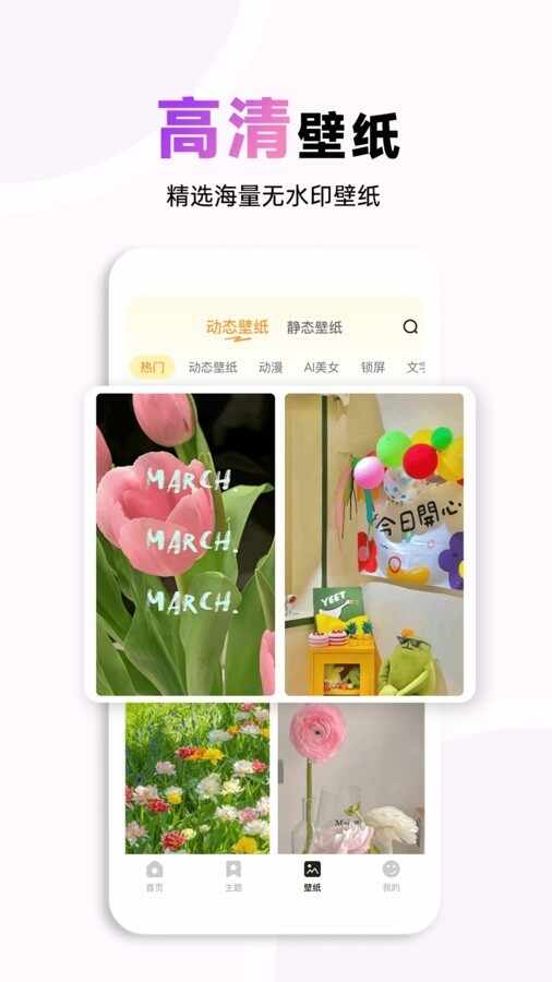 1、丰富的壁纸主题资(zi)源,在线一键设置自己(ziji)喜歡的主题素材(material)。