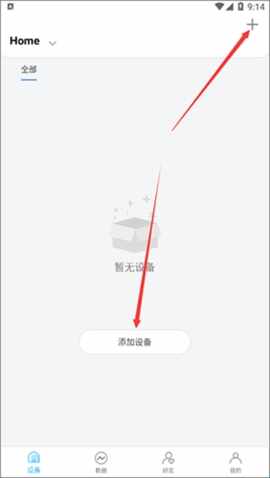 1、点击右上角的“+”按钮或点击“添加设备(shebei)”開始添加新的(new)设备(shebei)。