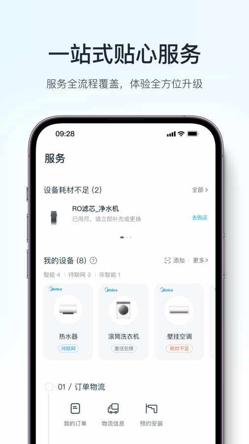 1、极简互联蓝牙/Wi-Fi双模智能适配,三步完成组网全品类设备统一接入协议三步完成智能组网配置2、一站式服务(Serve)订单物流/安装联网/产品使(shi)用/产品换修,服务(Serve)全流程支持(support)工程师远程视频诊断,90%问题1次解决7×24小时智能客服在线(online)支持(support)3、全画面智控APP/语音/中控屏/车载屏四端互联语音指令+小组件控制,响应更快、更准4、AI家庭助手实时监测耗材余量/设备状态,智能预警提醒海量家电知识库秒级响应,专业问题解答设备支持(support)食谱智能推荐,烘烤时间不纠结深度AI逻辑+拟人化交互,陪伴式家居管理5、多品类多品牌商(shang)城(cheng)聚合全屋智能生态链,精选美的旗下品牌及生态伙(huo)伴(ban)产品正品保障+急速配送+无忧安装服务(Serve)覆盖智能家电/IoT硬件/耗材配件全品类,提供(supply)画面化智能设备组合方案