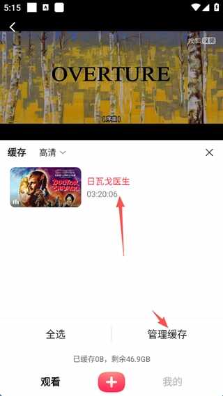 6、点击電影名称,再点击屏幕右下角的“管理缓存”。