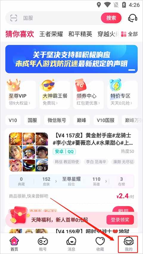 1、首(shou)先登陆租号玩app,点击右下角的【我的】来进入个人界面。