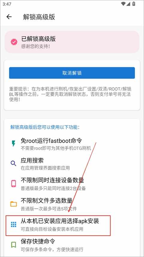 (2)在为已解锁设备上进行刷机/恢复出厂設置/双清/root/解锁bl等操作之前,一定要先取消解锁状态,否则支(zhi)付(fu)单号将无法使用。卸载应用和清除应用数据不会导致支(zhi)付(fu)单号失效。