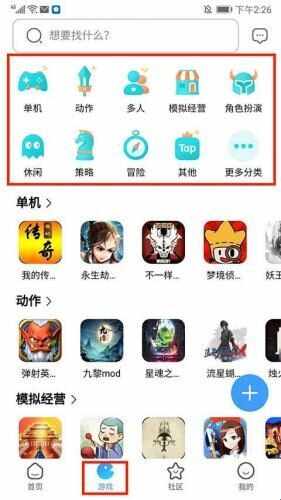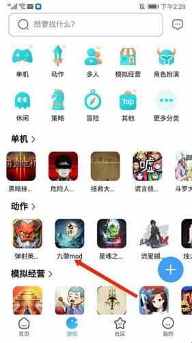 4、进入【游戏界面】,用户可以在这(zhe)里(li)搜索和下载需要的游戏mod资源。分为【单机】、【动作】、【多人】、【模拟经营】、【角色扮演】、【休闲】等类型的游戏,也可以在上方【搜索框】输入需要的游戏名称前进查(cha)找。