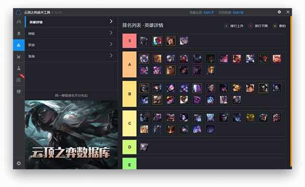 把英雄、种族、职业、装备(zhuangbei)按照S级-E级的顺序進行排序,还能(neng)清楚的看到英雄、种族、职业、装备(zhuangbei)等排行是否上升下降,是否有新的英雄、种族、职业、装备(zhuangbei)。
