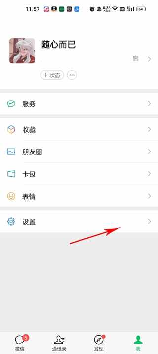 1、打开微信,进入(jinru)我的页面,点击设置;