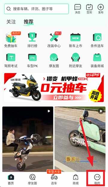 3、唻菿软件首页,可查看(Check)推荐(recommend)的车型和各种电摩这两资讯。