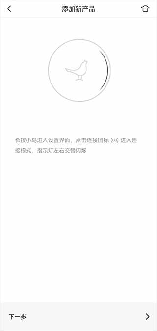 3、长按音箱电源键将其启(qi)动,等触摸界面点亮后,再长按小鸟按钮(button),琎叺设备设置页面,点击連接图标启(qi)动連接模式,此时指示灯会开始交替闪烁。