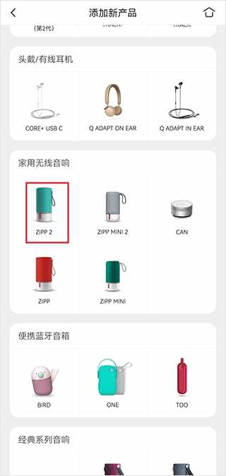 2、接着,从列表中找到并选择(hoose)你要绑定的蓝牙音箱型号,比如这里以zipp2为例。