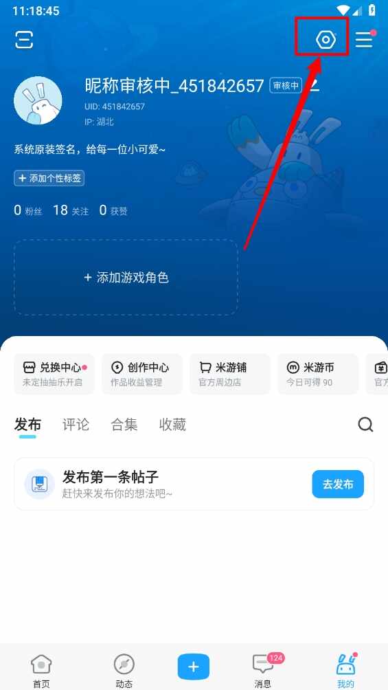3、然后琎叺我的(de)页面(mian),点击右上角设置图标。