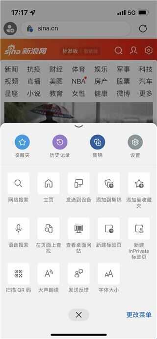 比如下图一中(zhong)的收(shou)藏夹、历史记录等,此外网上滑动还可(ke)以(yi)看到更加(gengjia)全面的工具,其中就有“大声朗读”这一项;