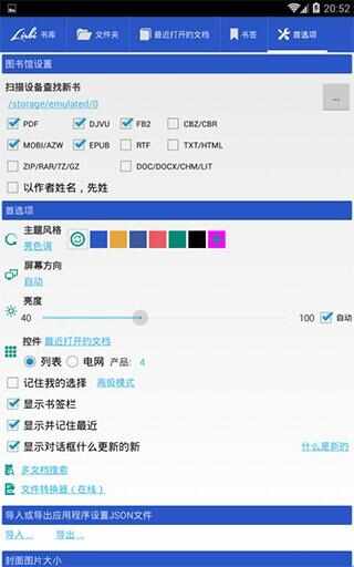 使用Librera Reader,您可以通过指定要包含的格式和要扫描的文件夹,轻松创建所有文档的自维护库。