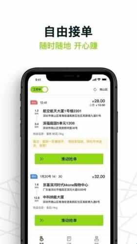 1、专为骑手推出的工具让接单、跑单、赚钱三不误,用户想什么时候接都可以。