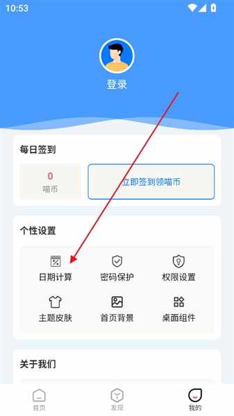 在“我的”界面,下滑至“个性设置”,选择第一个“日期计算”,在这里不仅可以计算天数还可以进行“日期间隔”、“日期推算”、“公农历转换”