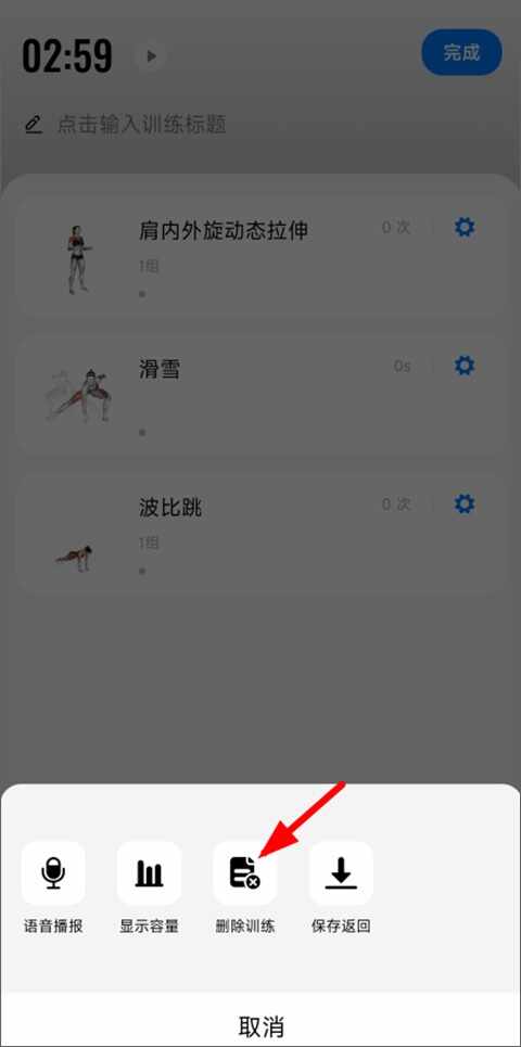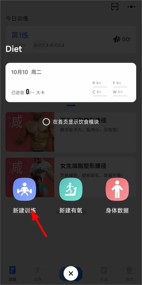 5、训练动作添加到计划中后,点击右下角设置,选择保存返回,即可在训练首页查看训练计划。