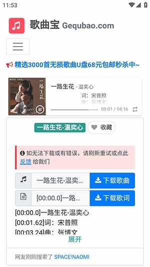 3、直接点击即可播放,同时支持下(xia)载歌曲以及下(xia)载歌词等功能(Function)。