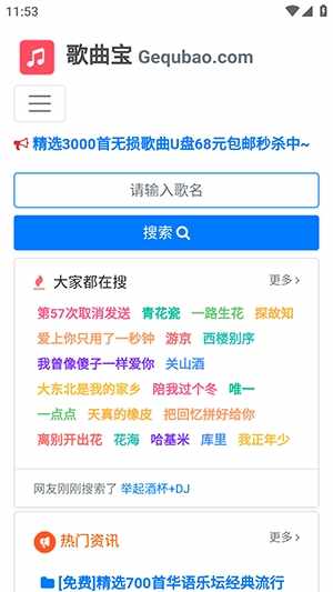 2、搜索或者直接点击想听或者想要(yao)下(xia)载的歌曲。