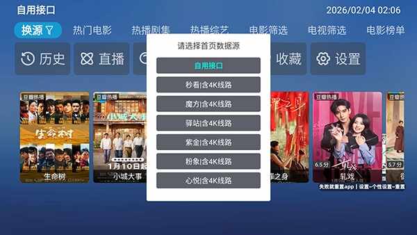 1、在软件首页点击左上角的换源选项可以切换影视源接口。