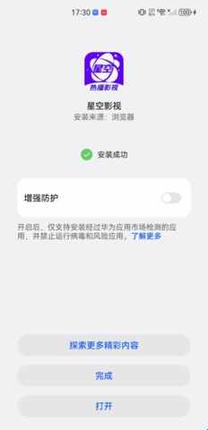 5、出现绿色对号,说明“安装完成”,点击打开,即可体验。