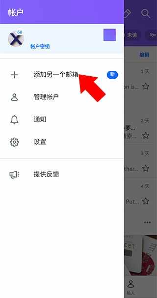 2、在打开的侧边栏中点击【添加另一个邮箱】;