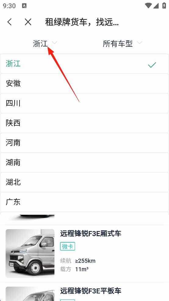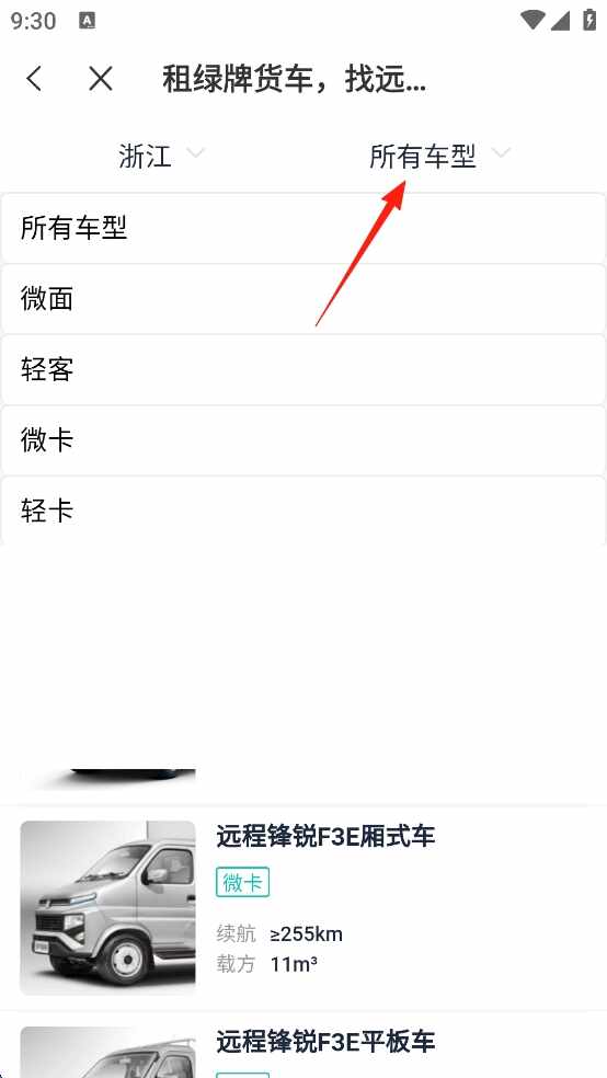 4、点屏幕右上角的“所有车型”,可以(yi)筛选车辆类型。