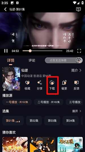 1、在播放界面点击(ji)下载(xiazai)功能。