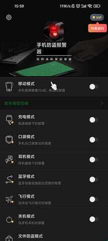 手机防盗报警器app内置多种不同的报警模式供用户体验,包括充电模式、口袋模式、耳机模式、飞行模式、文件防盗模式、关机模式等等,满足不同用户在不同场景下的手机防盗需求,比(bi)如耳机模式是报警方式是耳机拔出了手机,全方位保护用户的手机。