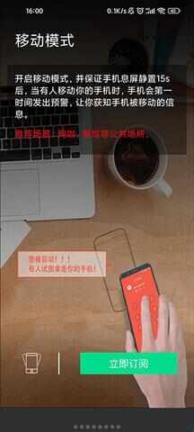 4、在移动模式里面,手机一旦被移动了也会有聲音,适合在网吧中使用。
