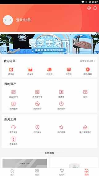 1、进入软件【首页】之(zhi)后(hou),我们就能看到一些热门的商品分类,如母婴儿童、美容彩妆、环球美食等。
