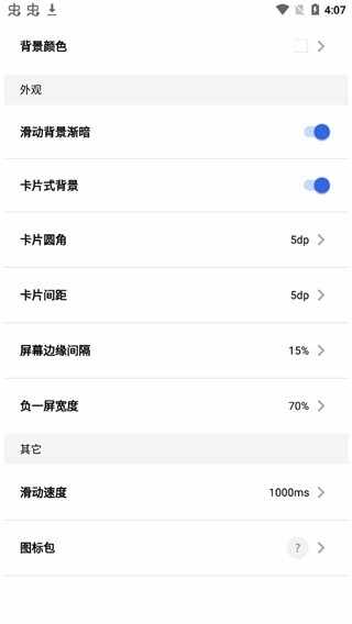 5、全局负一屏支持一些基本的设置以及(yiji)高级设置,这也是(Too)它与先前一个版本的最大不同,就是拥有了更多的自定义选择,满足乐友多元化的需求,你can随心的设置了
