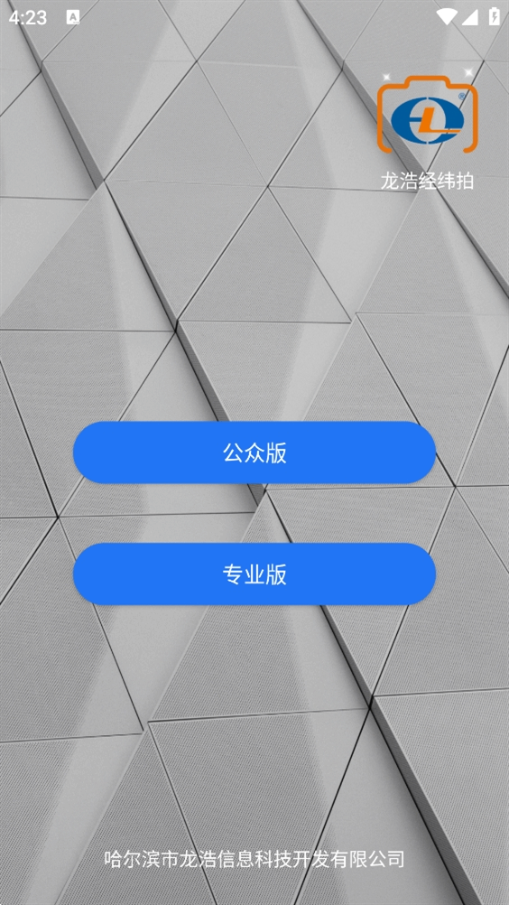 2、我们可以通过龙浩经纬拍app来选择公众版和专业版两个不相同的版(ban)本进行使用。