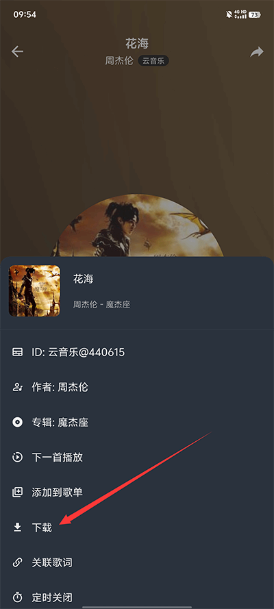 3、进(jin)入播放界面后,点击下载按钮,并选择(hoose)音质;