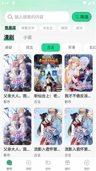 1、打开番咖免费漫剧app,这里有海量的漫剧以及丰富的题材