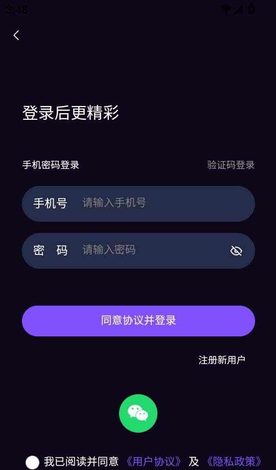 2.在登录界面输入手机号与密码后,点击“同意协议并登录”按鈕进入程序