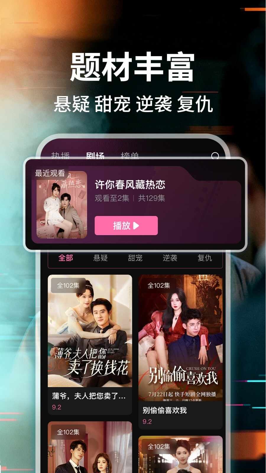 抖全部免费短剧(抖抈短视频下载破解版)在这里有许多的不同分类,包括甜宠、青春、都市、爱情、古装、玄幻、悬疑、神话等等,满足用户的各种播放需求,每天还会进行实时更新,没有任何广告困扰,操作简单界面简洁大方,喜欢的还可以加入收藏,随时随地想看就看,更多精彩内容快来看看下面的具体介绍吧。