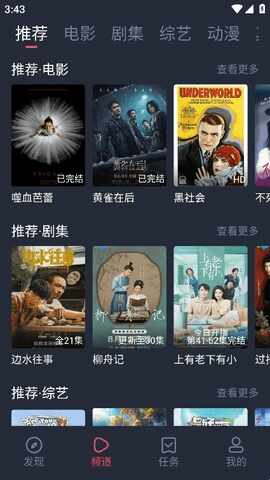 1、进入软件你可以发现丰富的影视推薦内容,有影视分类频道可以选择。
