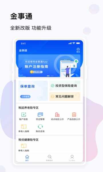 金事通(金融通app免费下载官网最新版)软件功能非常强大,涵盖政策查询、投资保险查询、税收延长养老险、税收健康保险等服务,用户可以随时随地查询自己的保单购买和各种保险问题,同时提供在线办理功能,接下来就让我们一起了解一下吧。