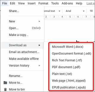 5、完成文档后,您可(ke)以(yi)将文档下载回DOCX或PDF,ODT,TXT,HTML或EPUB格式。单击文件>下载为,然后单击所需的格式,它将直接下载到从浏览器保存文件的位置,以上就是谷歌文档最新版的用法了。