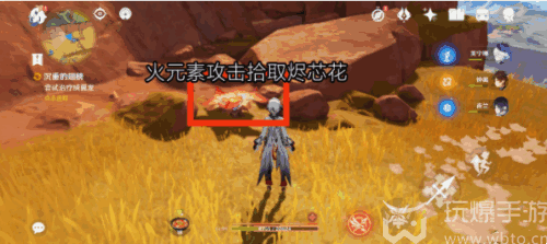 5、完成调查之後,就使用火元(yuan)素(su)攻(gong)击(ji)花苞加快生长,收集3个烬芯花。