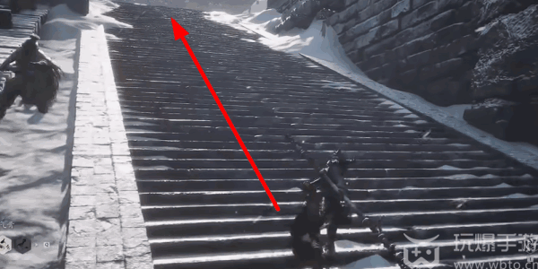 4、然后就从大门出(chu)来(lai)之后,就可以爬上这个(ge)楼梯就(jiu)能看(kan)到泥塑金刚boss。