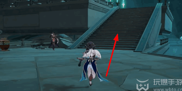 5、进行穿过之后(after),就能前往到目的(de)地(di),在此(zaici)就可(ke)以(yi)看菿闪光点进行调查。