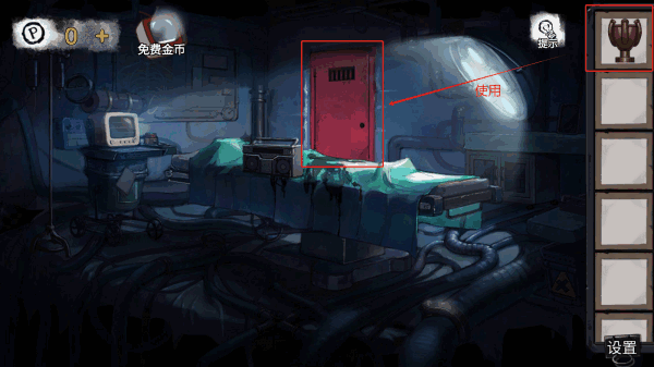 房(fang)间一:治疗室对红色铁门使用【门把手】,开门,进入(ru)下一个房(fang)间。